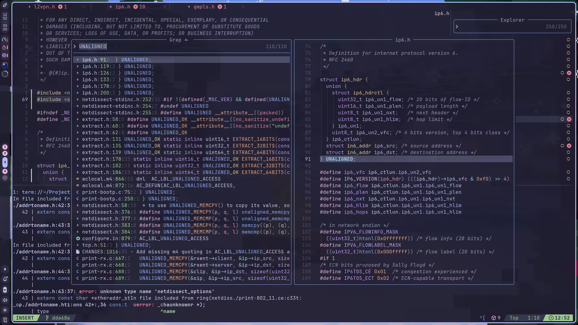 然后是 redefinition of 'UNALIGNED' with a different type: 'struct ip6_ext' vs 'struct ip6_hdr' 这种重定义,先 grep 看看 UNALIGNED 是个啥: