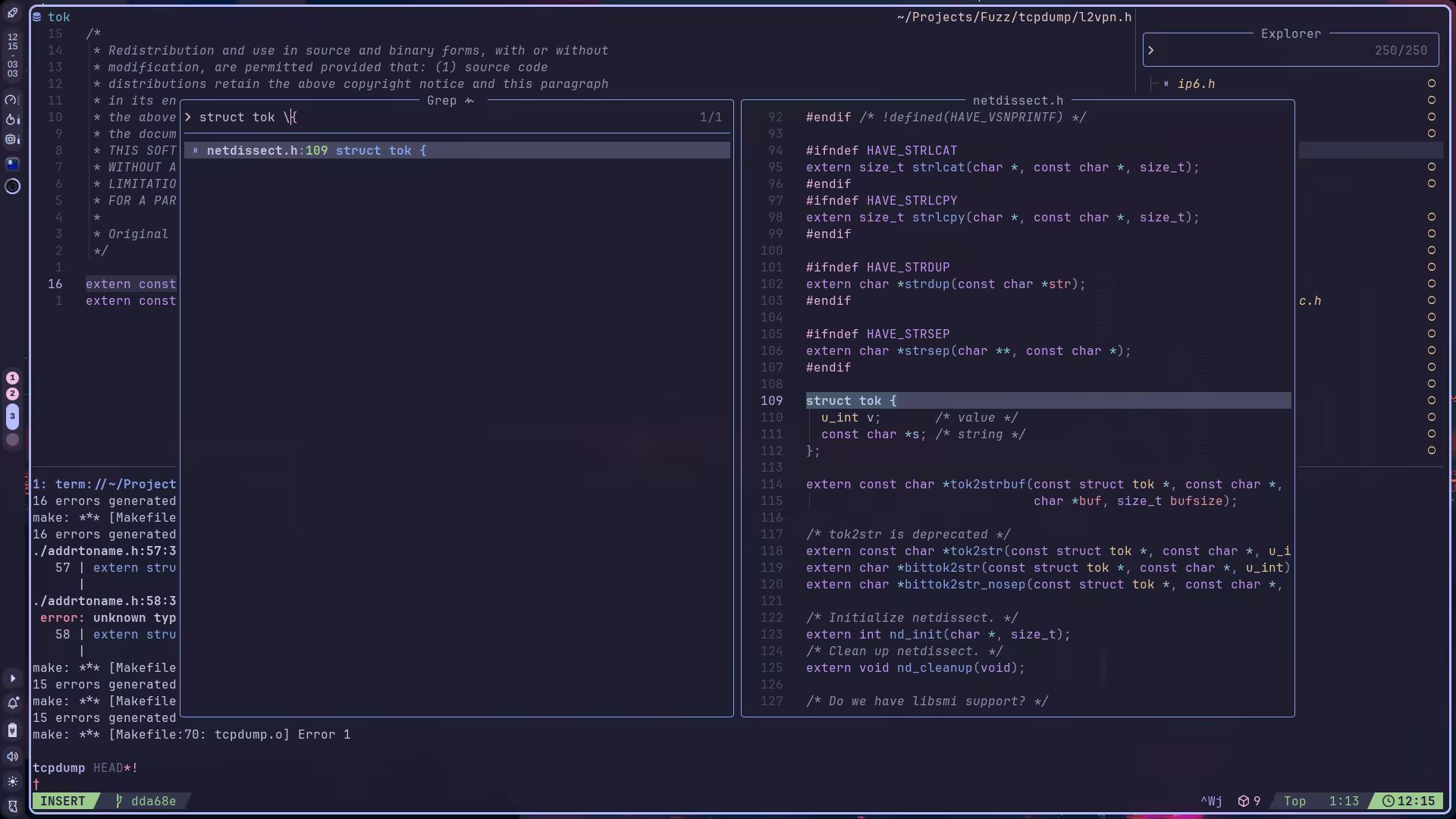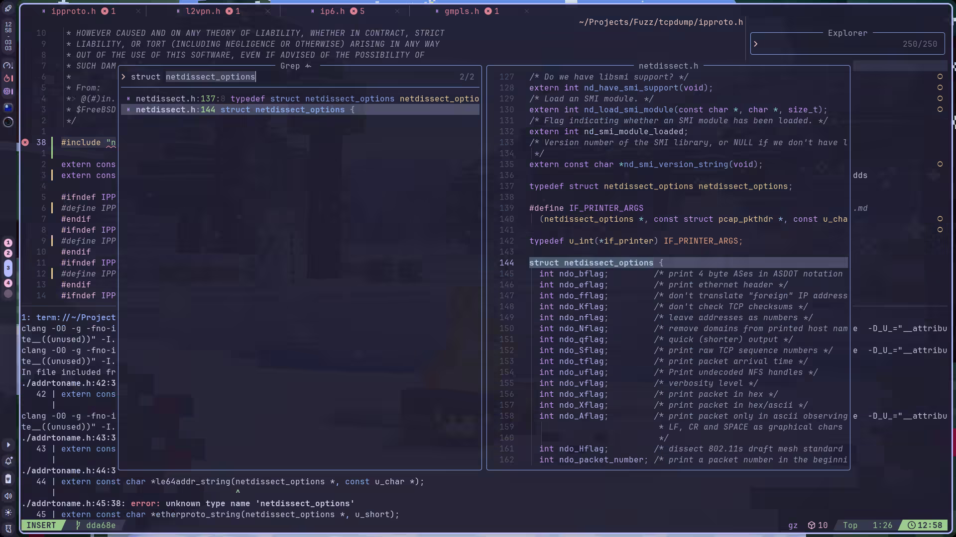 那我们直接在报错的文件 l2vpn.h 中加入 #include "netdissect.h" 就好了。