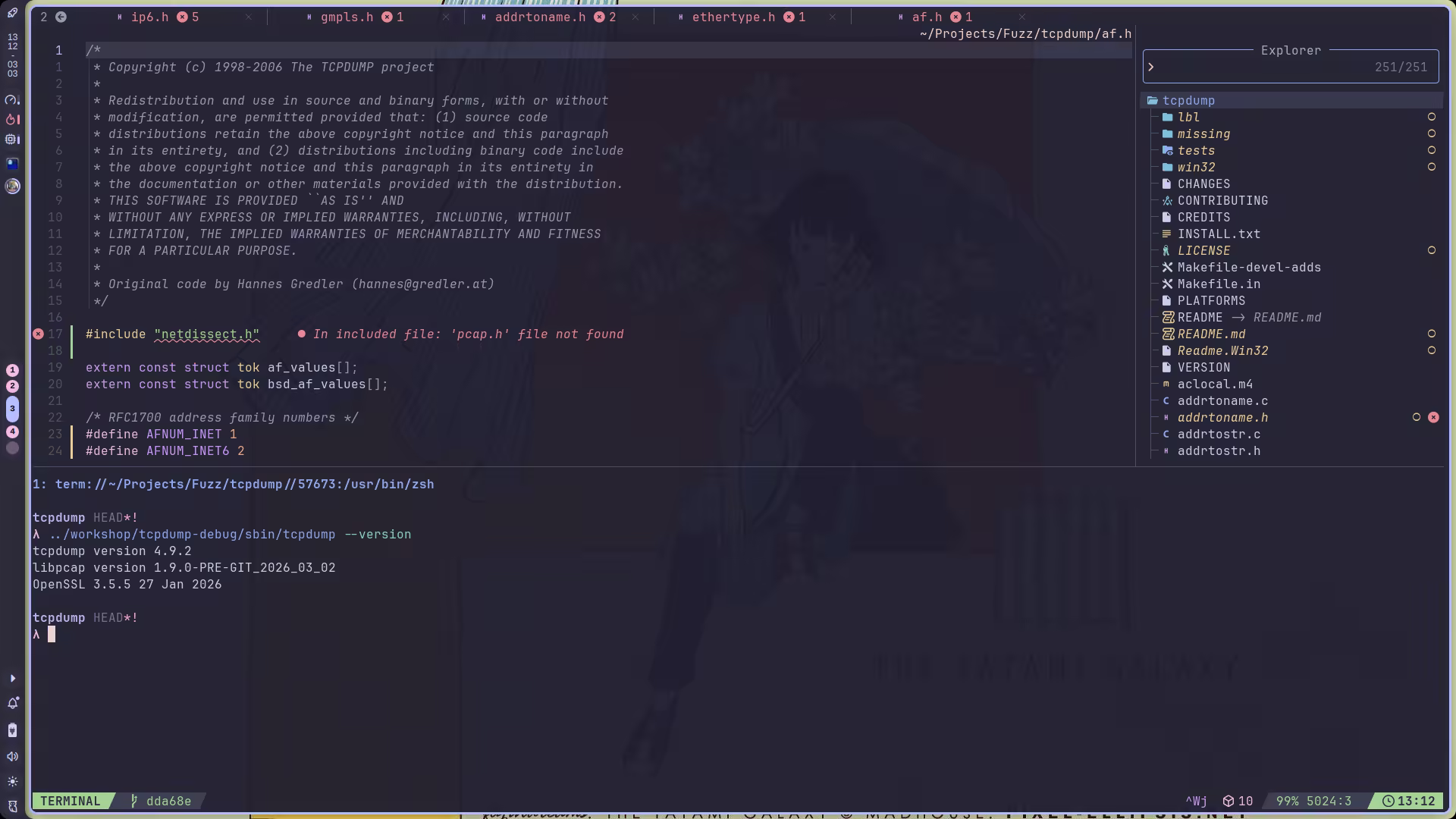 AFL_USE_ASAN=1 CC=afl-clang-lto CXX=afl-clang-lto++ ./configure --enable-shared=no --prefix="$(realpath ../workshop/libpcap-fuzz)"AFL_USE_ASAN=1 make -j`nproc` && AFL_USE_ASAN=1 make install编译完 libpcap 后开开心心去编译 tcpdump,本以为会很顺遂,然后一 make: