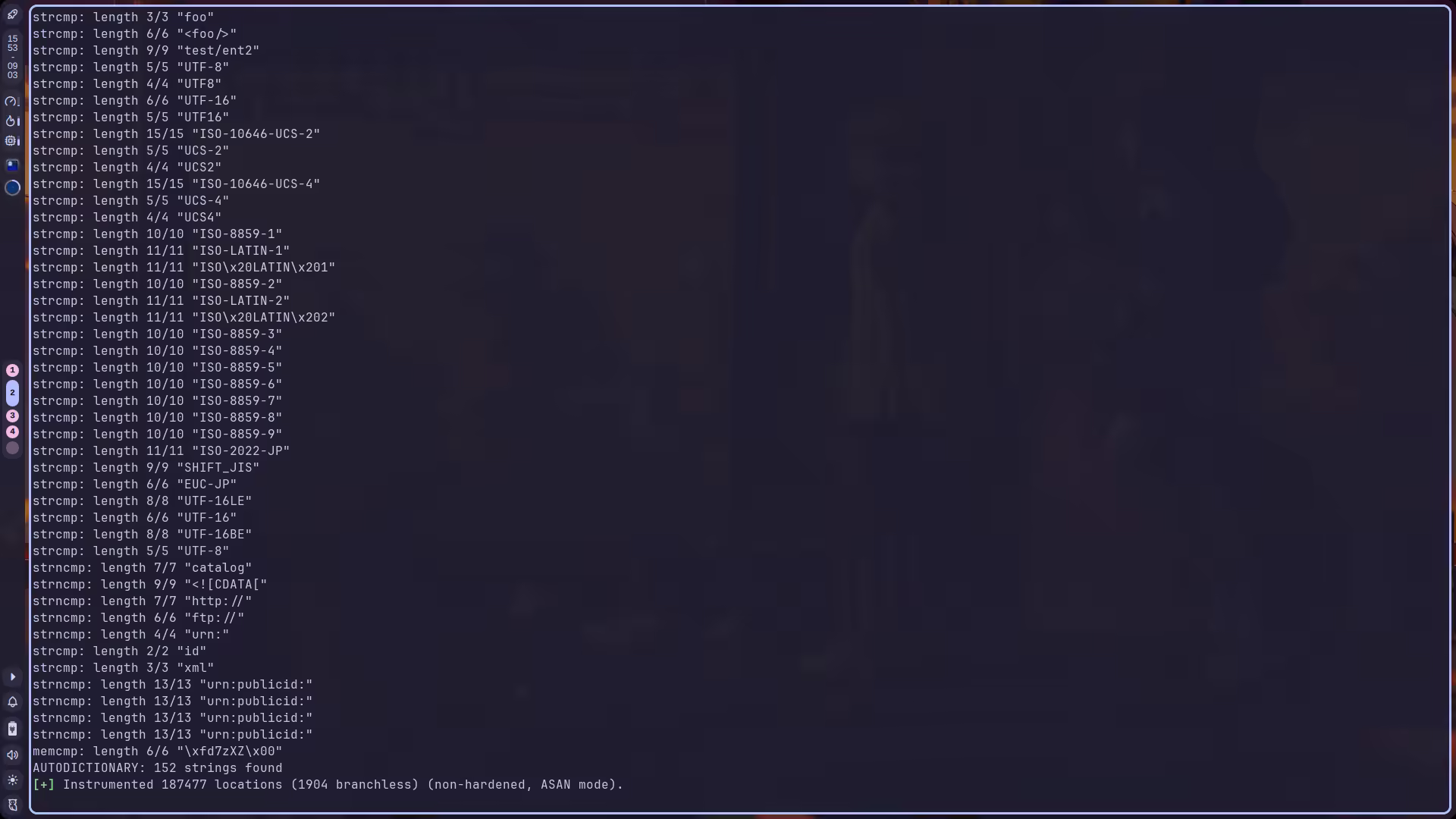./autogen.shAFL_USE_ASAN=1 \CC=afl-clang-lto \CXX=afl-clang-lto++ \./configure \ --prefix="$(realpath ../libxml2-fuzz-asan)" \ --disable-shared \ --without-debug \ --without-ftp \ --without-http \ --without-legacy \ --without-pythonmake clean && \AFL_USE_ASAN=1 make -j`nproc` && \AFL_USE_ASAN=1 make install每次耗时最长的就是「如何编译」……