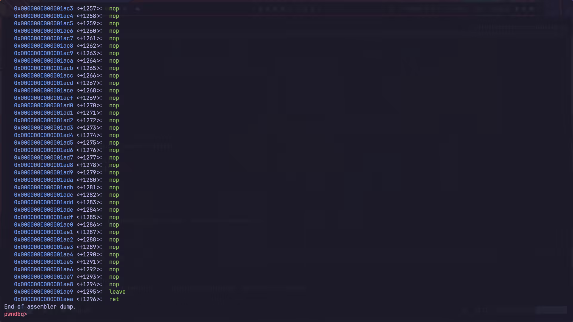 v5 = a1; v4[2] = a2; v4[1] = a3; v8 = __readfsqword(0x28u); puts( "This challenge reads in some bytes, overflows its stack, and allows you to perform a ROP attack. Through this series of"); puts("challenges, you will become painfully familiar with the concept of Return Oriented Programming!\n"); sp_ = (__int64)v4; bp_ = (__int64)&savedregs; sz_ = ((unsigned __int64)((char *)&savedregs - (char *)v4) >> 3) + 2; rp_ = (__int64)&retaddr; puts( "PIE is turned on! This means that you do not know where any of the gadgets in the main binary are. However, you can do a"); puts( "partial overwrite of the saved instruction pointer in order to execute 1 gadget! If that saved instruction pointer goes"); puts( "to libc, you will need to ROP from there. If that saved instruction pointer goes to the main binary, you will need to"); puts( "ROP from there. You may need need to execute your payload several times to account for the randomness introduced. This"); puts("might take anywhere from 0-12 bits of bruteforce depending on the scenario.\n"); v6 = read(0, buf, 0x1000uLL); printf("Received %d bytes! This is potentially %d gadgets.\n", v6, (unsigned __int64)&buf[v6 - rp_] >> 3); puts("Let's take a look at your chain! Note that we have no way to verify that the gadgets are executable"); puts("from within this challenge. You will have to do that by yourself.");3 collapsed lines